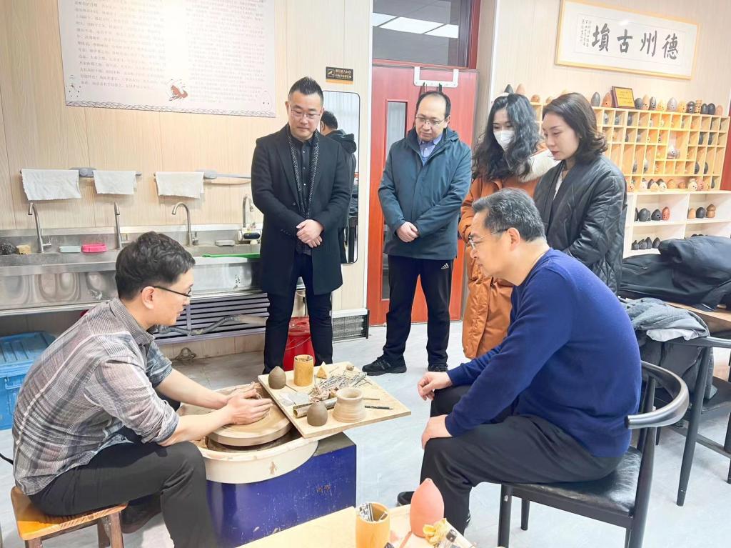 2月11日下午,德城区委常委、区委办公室主任孟宇来Beat365官网调研指导省级非遗项目“德州古埙制作技艺”等相关工作。德城区文联副主席吴金刚,德城区文旅局副局长张璐,学校党委委员、宣传部部长任立春参加活动。