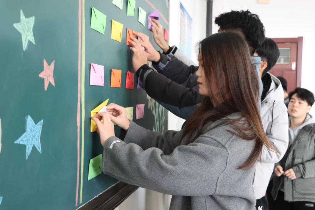 经济管理学院通过团体小游戏“撕纸人生”引导学生知晓时间管理的重要,同学们在“朋辈互动”“家长寄语”的美好祝愿中收心归位,扬帆起航。
