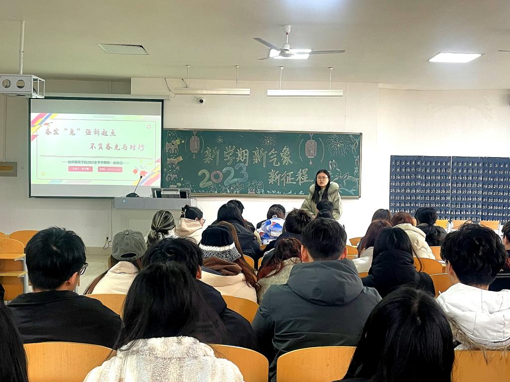 纺织服装学院以奋发“兔”强新起点,不负时光与时行为题,通过“收心、决心、恒心、爱心、用心”五心解读,引导学生收心敛性,下定决心,持之以恒,坚持不懈,用心读书,做好学问,不负时代,不负韶华。