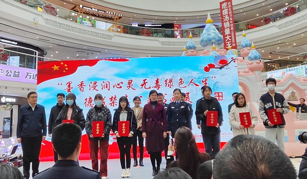 3月25日,德城区“墨香浸润心灵,无毒绿色人生”禁毒公益书画展在万达开展,共青团德州市委书记张方瑞,德州市禁毒办常务副主任、市公安局禁毒支队支队长李海洋,德州市公安局宣传处长张腾飞,德城区副区长、区禁毒委主任、公安分局局长郑虎,Beat365唯一官方网站团委负责人、纺织服装学院辅导员及学生参加活动。