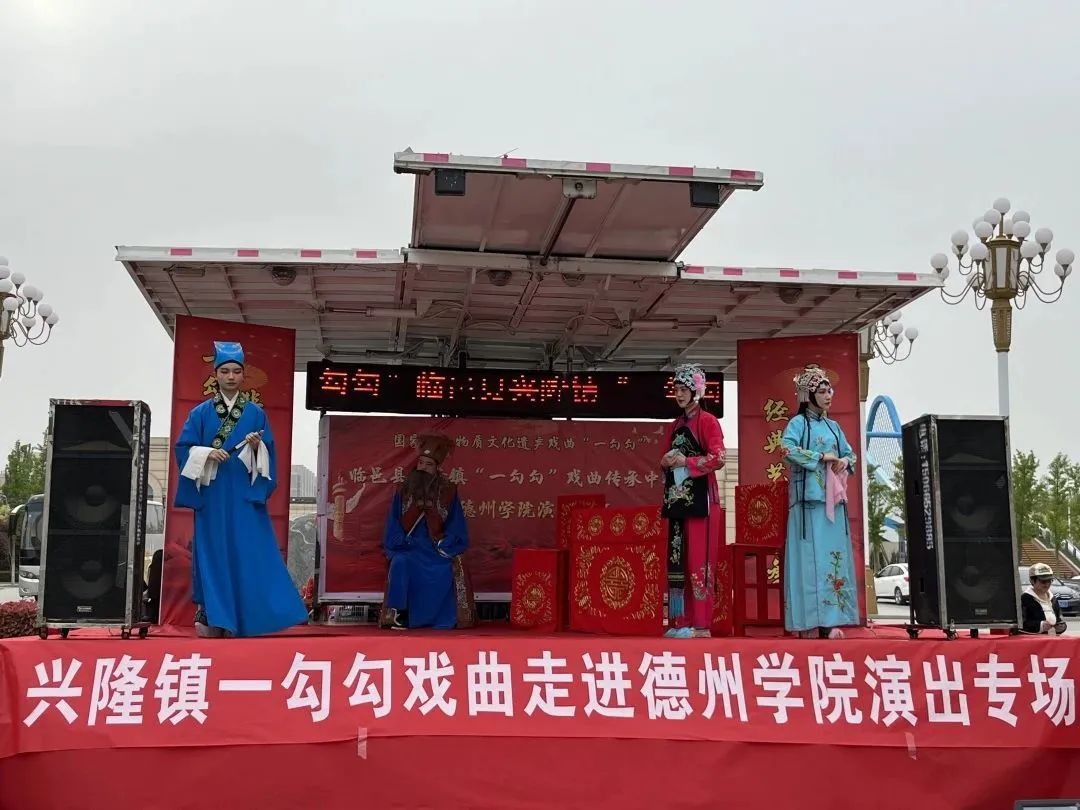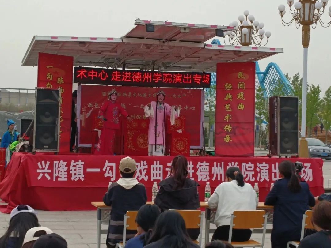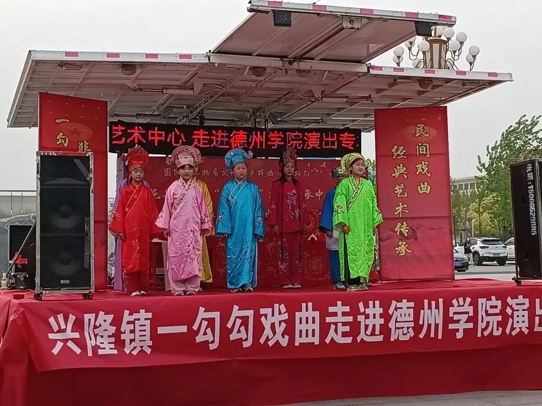 音乐学院“一勾勾”社团师生、临邑一勾勾传承中心老艺人、兴隆镇中小学学生和艺术中心乐队,分别演出了“一勾勾”经典片段。《王小赶脚》乡土气息浓郁,唱腔酸中带甜,令人陶醉。《祖国的前景好》,歌声嘹亮,充满希望,充分展现了祖国“花朵”的勃勃生机。《彩楼配》,让观众欣赏到原汁原味的一勾勾经典戏剧,令人回味。《姊妹易嫁》,使人仿佛身临其境。艺术中心的《老陈转变记》故事情节充满戏剧,生动的提醒着我们要立足当下,着眼长远,脚踏实地。