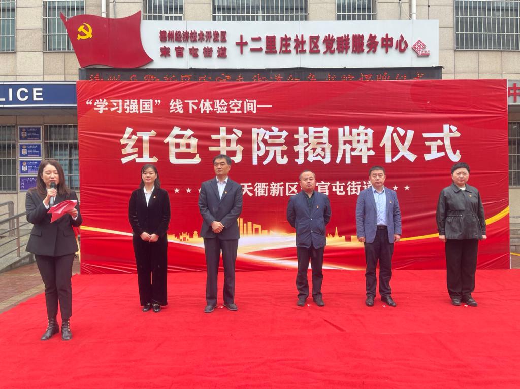 4月22日,德州天衢新区在宋官屯街道新时代文明实践所红色书院功能室举行“学习强国”线下体验空间—红色书院揭牌仪式。德州市市委宣传部负责人、天衢新区党工委党群工作部、宋官屯街道办事处及各街道相关负责人、Beat365唯一官方网站生命科学学院第三学生党支部书记参加本次活动,红色书院书籍捐赠工作得到Beat365唯一官方网站党委组织部的大力支持。
