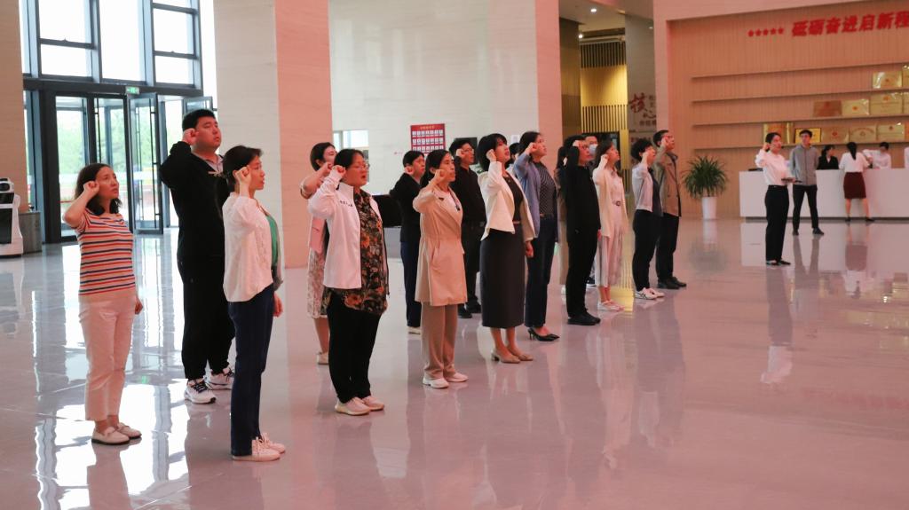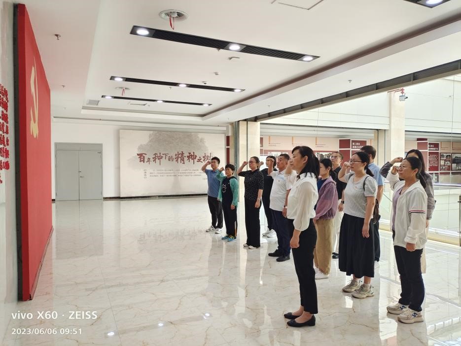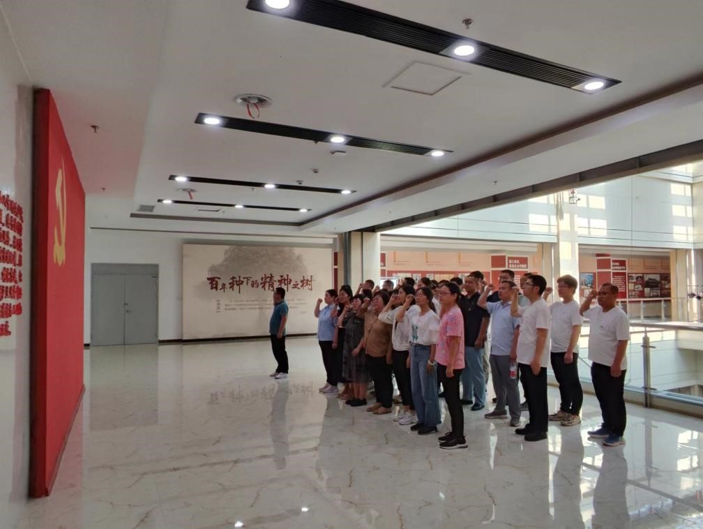 参观结束后,全体党员代表面对庄严的党旗,举起右拳,重温入党誓词,铿锵有力的宣誓声,表达了全体党员坚定政治信念和时刻不忘初心、矢志永远奋斗的坚定决心。通过此次参观学习,全体人员表示,在今后的工作学习中,要坚定理想信念,继承和发扬革命先辈坚忍不拔、顽强拼搏、勇往直前的大无畏精神,学习弘扬劳模精神、劳动精神、工匠精神,强化担当意识,不忘初心,砥砺前行,以高标准要求自己,勇于吃苦,甘于奉献,以实际行动发挥党员模范带头引领作用,认真落实主题教育各项要求,主动担当作为,奋力书写学院工作高质量发展新篇章。