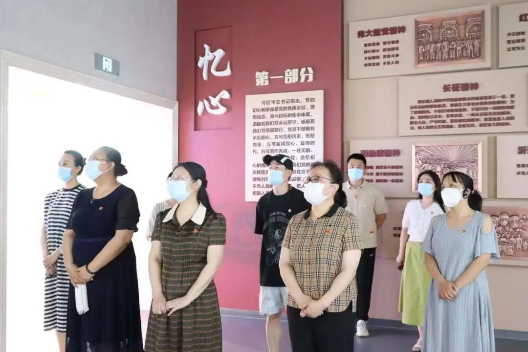 参观结束后,党员教师参与重温入党誓词活动。通过面对党旗庄严宣誓,老师们表示将践行入党誓词,坚定理想信念,继承党的优良传统,以更加强烈的使命担当奉献于工作当中。