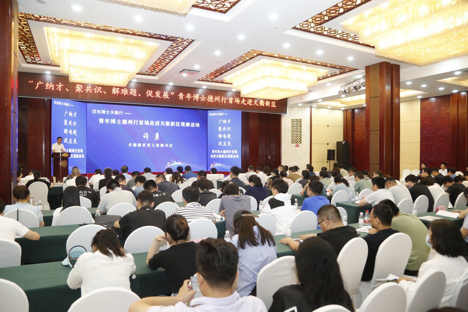 德州天衢新区(德州经济技术开发区)党工委副书记许勇致辞。他表示,天衢新区举行“青年博士德州行首场走进天衢新区观摩活动”,是天衢新区落实省市工作部署,践行人才优先发展战略,推进人才服务提档升级、加快高校高层次人才和天衢新区产业深度融合的重要举措。天衢新区将以此次观摩活动为契机,充分利用新区优势,更好发挥在京津冀鲁协同发展中的“桥梁纽带”作用。真诚希望专家人才,能深入了解天衢新区,合作融入天衢新区,天衢新区将以最大诚意、最优政策、最好服务,全力为行业发展保驾护航、加油助力,共享时代机遇,共创美好未来。