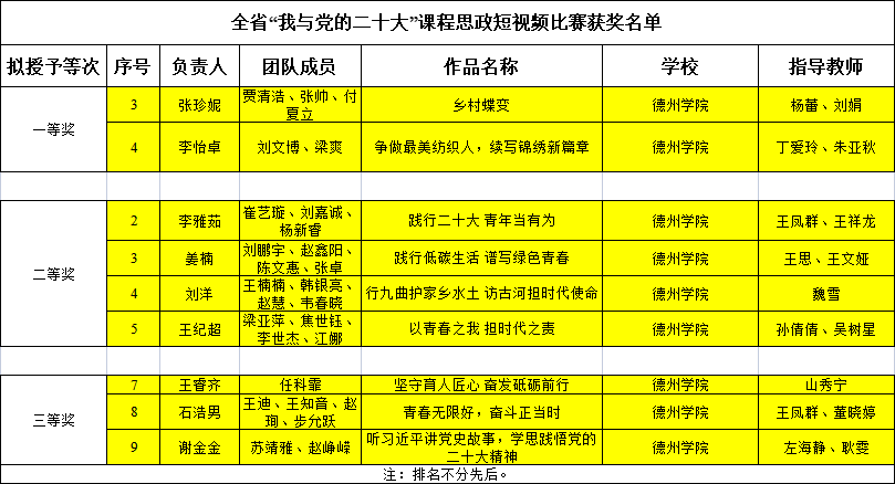 据悉,“我与党的二十大”课程思政短视频比赛由山东省教育厅高等教育处指导,山东省高等学校课程思政研究中心主办,面向全省普通本科高等学校所有在校学生开展。经专家网络评审,最终确定优秀作品一等奖34个、二等奖69个、三等奖104个。