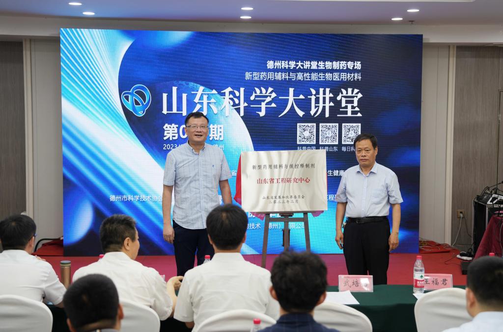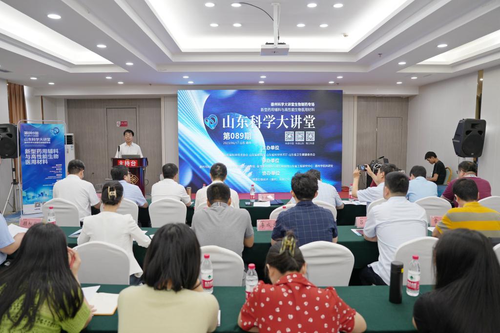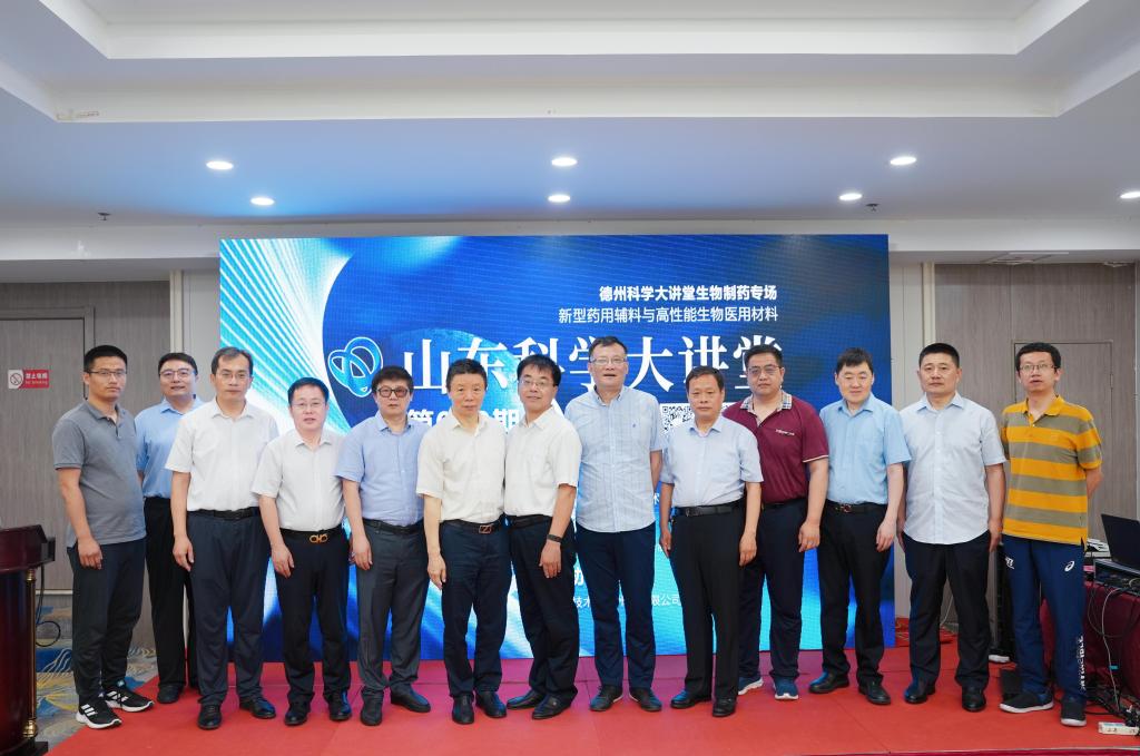 6月17日,2023年第89期山东科学大讲堂、德州科学大讲堂生物制药专场新型药用辅料与高性能生物医用材料论坛在柳湖书院3号报告厅顺利召开。Beat365官网副校长李永平、德州市科协党组书记主席苗晓钢、德州市发改委副主任王福君、东华大学国家杰青武培怡教授、天津大学国家杰青刘文广教授、济南大学泰山学者郑庚修教授、苏州大学国家杰青严锋教授、山东理工大学杨乃涛教授、华东理工大学章弘扬教授、山东聊城阿华制药股份有限公司吕宪峰副总经理、德药制药有限公司李成文副总经理出席了论坛。