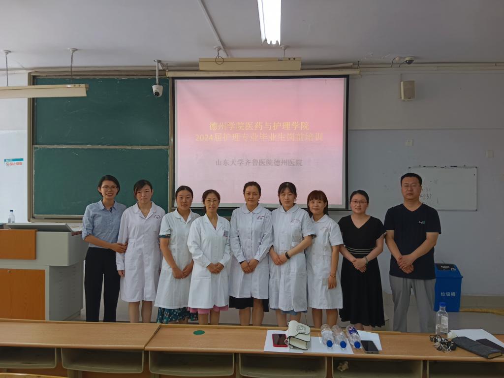 2024届护理专业学生毕业实习在即,为了规范护理专业实习生管理,尽快融入医院环境和适应临床工作,6月16日,医药与护理学院邀请山东大学齐鲁医院德州医院多名护士长来校进行毕业实习岗前培训。护理学专业多名教师与医院各位护士长就人才培养、社会服务等方面进行了探讨与交流。