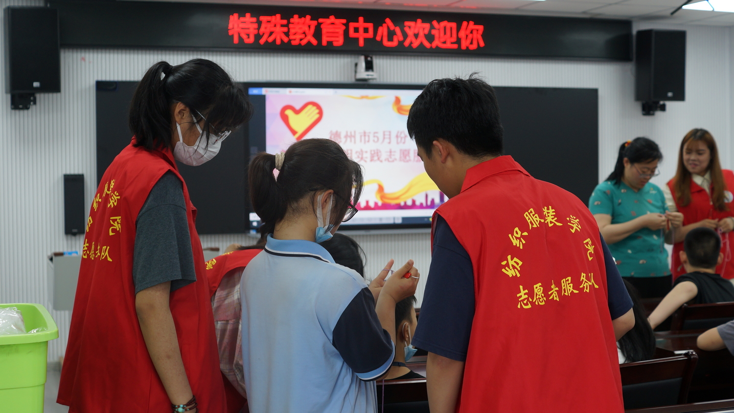 为深入开展学习贯彻习近平新时代中国特色社会主义思想主题教育,扎实推进“我为群众办实事”,近日,纺织服装学院联合德城区特殊教育学校协同开展“习‘艺’技之长”关爱特殊教育学生志愿服务计划。