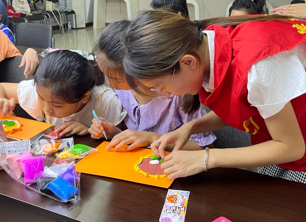 团队志愿者以教材中的重点结构图及实验为基础,借助图解详细讲解了动物细胞和植物细胞的结构,带领小朋友们打开微观世界的大门。小朋友们利用橡皮泥、超轻粘土、彩色卡纸等日常生活中常见的材料,充分发挥创意,踊跃参与模型制作,细致入微地勾勒出生物体的各个结构,精美的构图、鲜艳的色彩,让人不由地对微观世界的生命之美肃然起敬。