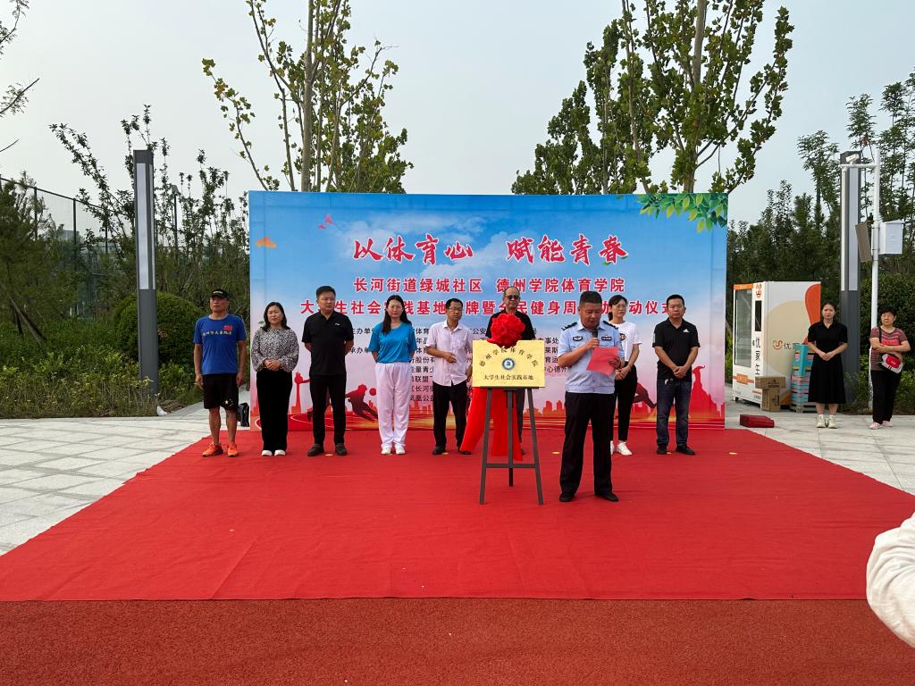 为深化校地合作,引导和激励广大青年学生深入社会,积极投身实践,在实践中经受锻炼,服务社会。8月19日上午,体育学院联合长河街道绿城社区在体育公园举行大学生社会实践基地揭牌暨全民健身周活动启动仪式。