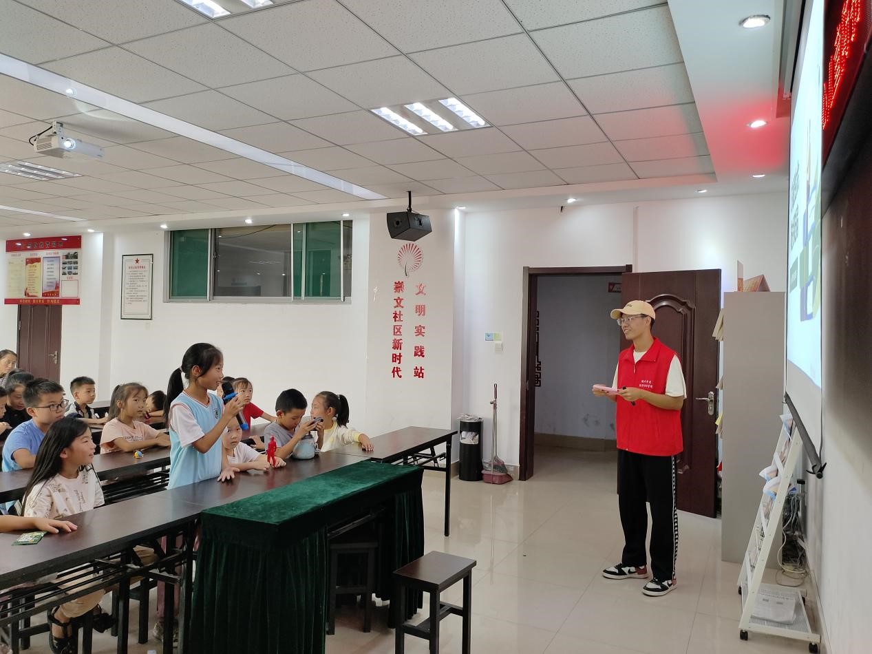 为强化反拐安全教育和防拐常识宣传,切实增强防范拐卖犯罪意识能力,最大限度保护少年儿童合法权益。扎实开展好“大学生社区实践计划”,9月22日,经济管理学院2022级会计学专业团支部走进崇文社区为辖区少年儿童开展“我不上你当”——防拐骗安全宣传教育活动。