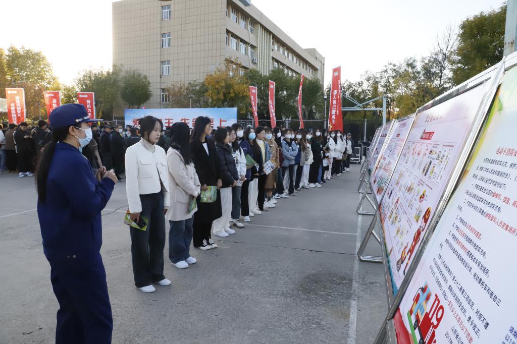 仪式结束后,师生代表和第三方工作人员共500余人在主题背景墙签字并参加了消防灭火实战演练,德城区消防大队宣教员作了现场讲解。