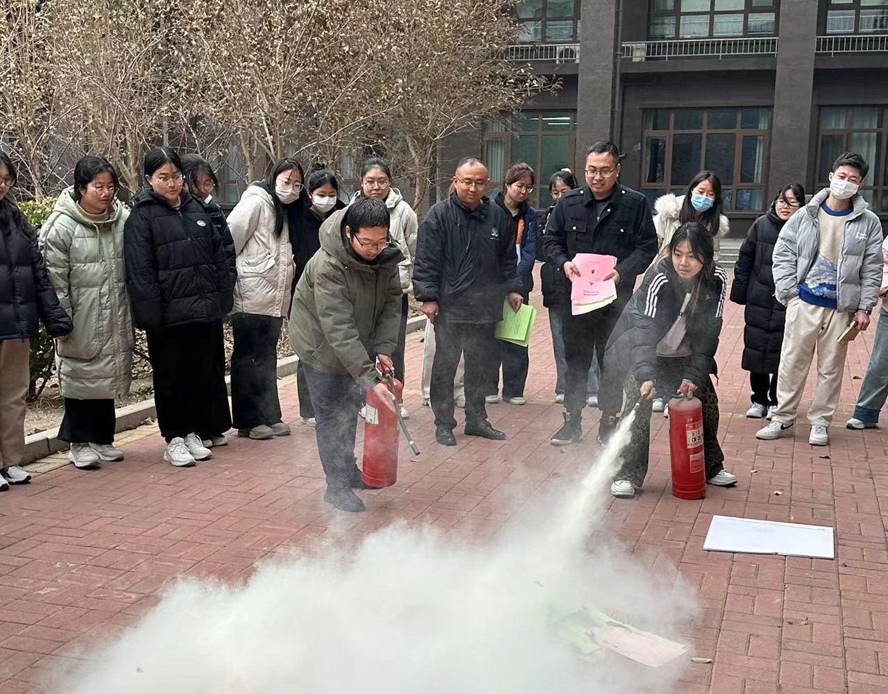 本次活动邀请了德州消防培训学校专业教练主讲,针对高校内常见火灾的发生与预防、消防火灾隐患发现能力、火灾逃生能力、如何报警等方面展开讲解。使在场师生既有效掌握了紧急疏散及逃生自救方法,也对消防安全的重要性有了更深层次的理解。培训结束后,外国语学院师生在校园空旷区域进行了灭火实战演练,教练按照“提、拔、握、压”四步骤,直观地向参训人员展示了手提式灭火器的使用方法,并进行了现场指导。参加培训的师生按照操作顺序和技巧,一一进行实操灭火演练,体验手提式灭火器的使用。