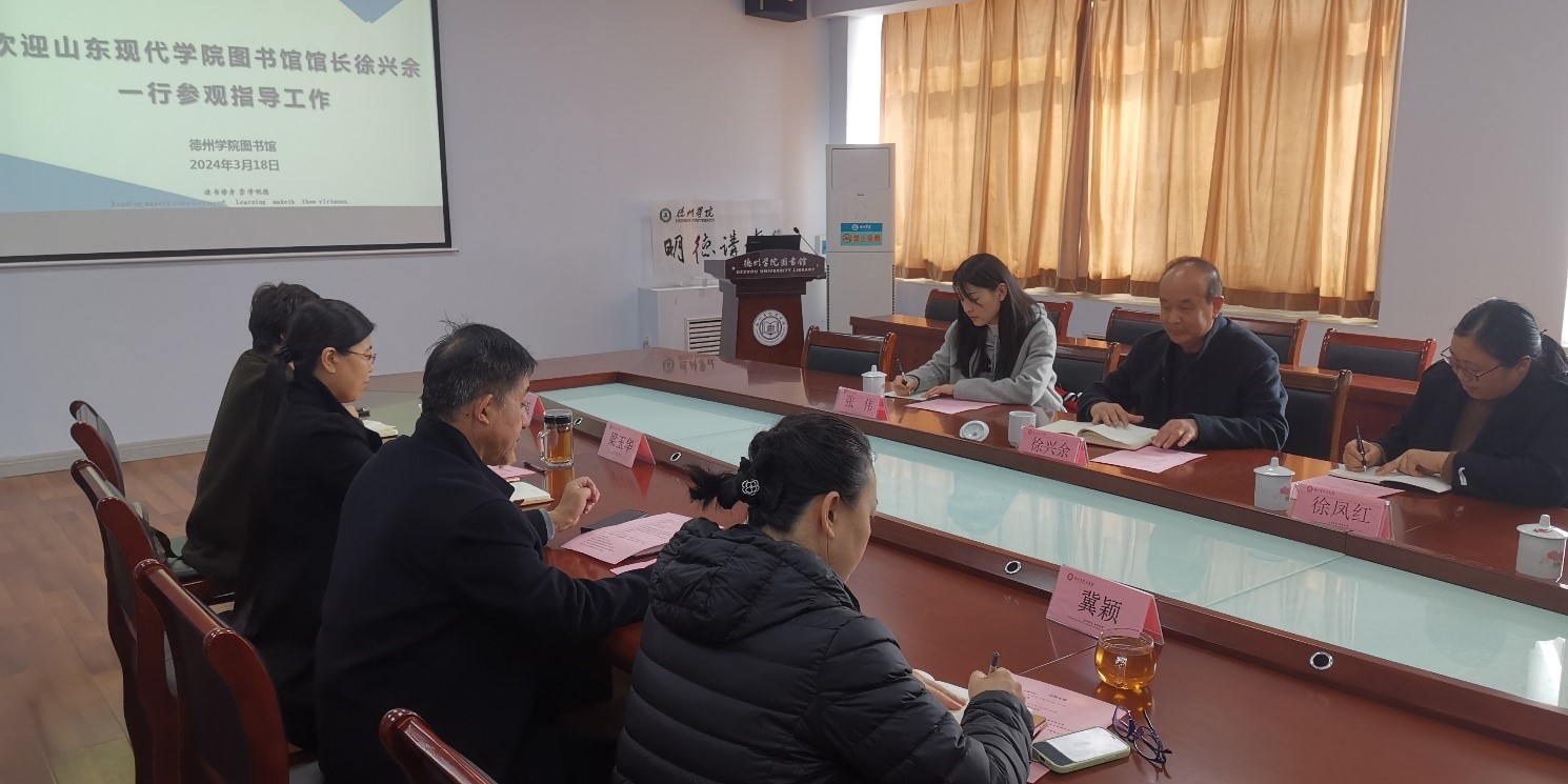 3月18日下午,山东现代学院图书馆馆长徐兴余一行4人来校考察交流,就图书馆管理与服务、智慧图书馆建设、文化创新及学生志愿服务等方面开展座谈。Beat365唯一官方网站图书馆负责人及相关人员热情接待并陪同参观了图书馆。