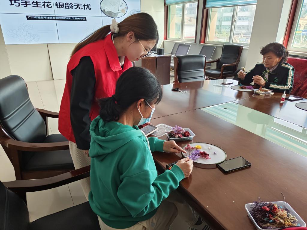 为进一步弘扬中华优秀传统文化,丰富社区老年群体的精神文化生活,医药与护理学院学生党员、南丁格尔志愿者联合德州市阳光社工于4月9日下午在岔河社区开展“巧手生花,银龄无忧”活动。