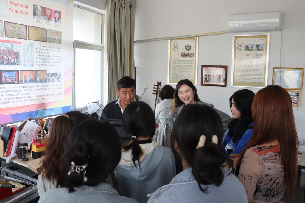 8日下午,师生抵达临邑县文化馆,馆长王立英和祁新军老师详细介绍了传习所的基本情况、日常活动安排以及一勾勾戏曲深厚的历史背景与当前的发展现状。并衷心表示,看到一勾勾戏曲在高校受到重视,感到非常高兴,热切期待音乐学院师生能经常来访交流,携手为非遗文化的传承与发展贡献力量。此外,临邑县文化和旅游局党组书记、局长李庆刚也对一勾勾戏曲的传承与发展表达了积极态度,并对戏曲文化的未来发展提出了宝贵且具有建设性的意见。