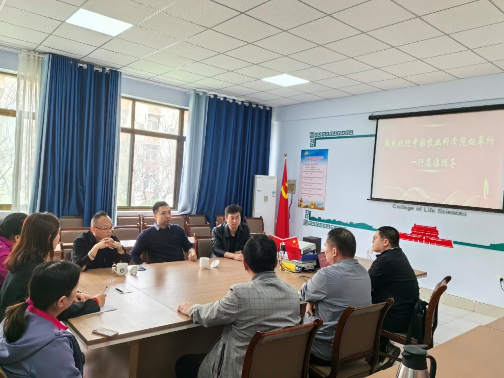 近日,中国农业科学院烟草研究所副主任宋文静、副研究员孟霖、郑学博一行来校座谈交流。生命科学学院主要负责人及部分青年教师参加了座谈。