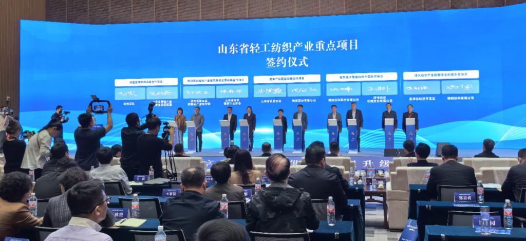 大会以“创美品 促升级”为主题,聚焦品质化、时尚化、个性化、品牌化消费升级趋势,突出科技创美、数字创美、设计创美、品牌创美四大行动,旨在加快打造轻工纺织产业新质生产力,促进纺织服装行业高质量发展。活动现场对全省10个轻工纺织产业重点项目进行了签约,纺织服装学院相关负责人与鲁锦产业高质量联盟签署协议“共建鲁锦学院战略合作项目”。