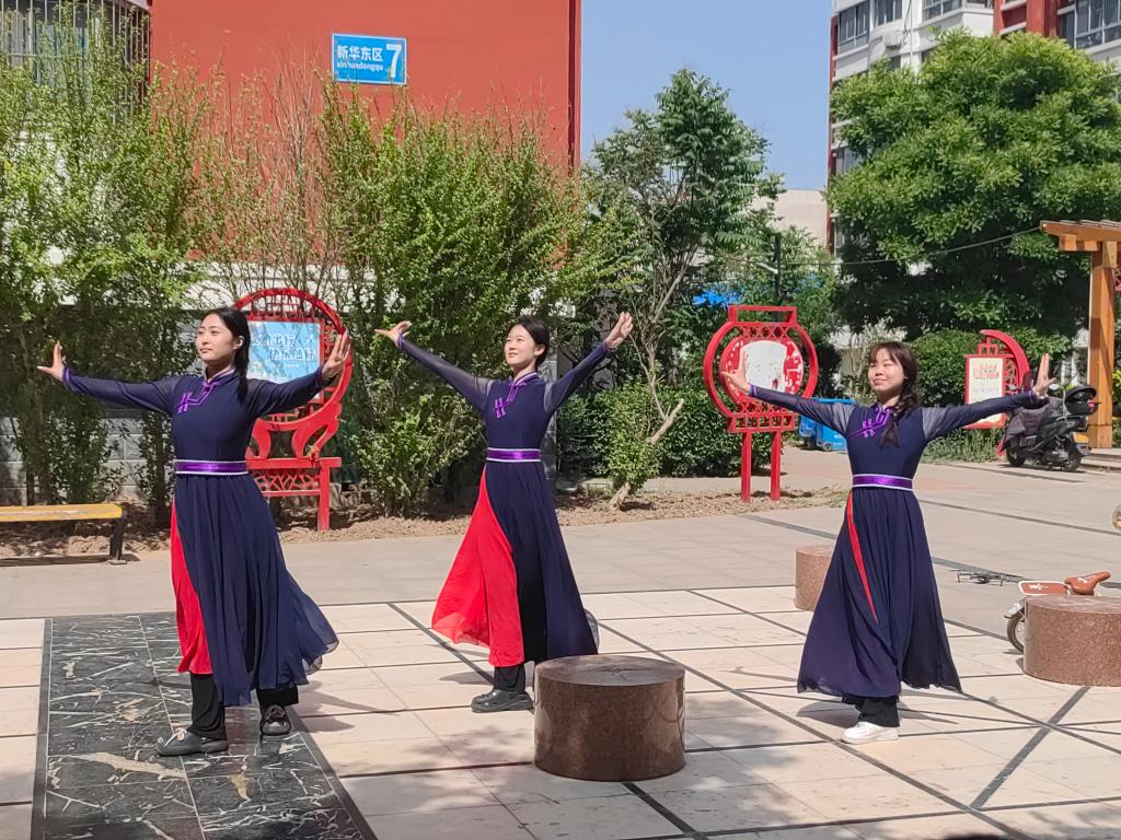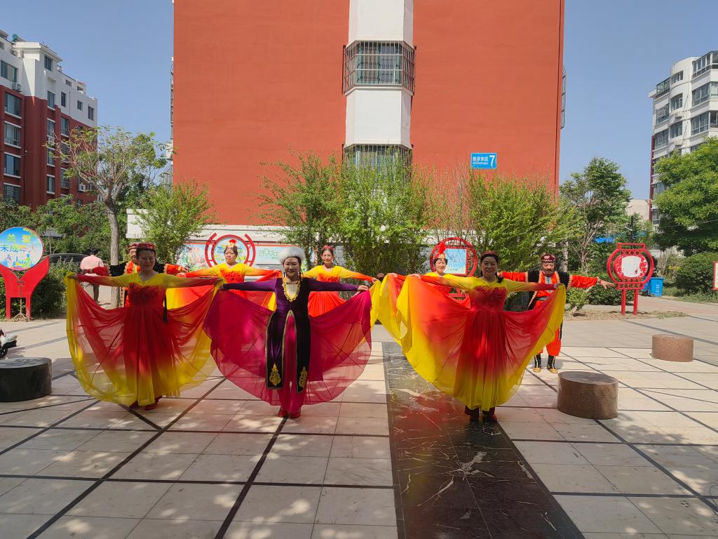 本次活动由新华街道德苑社区联合音乐学院志愿者们共同开展。新华街道德苑社区的居民们带来的扇子舞《中华戏韵》尽显民族团结的幸福感;新疆舞《花儿为什么这样红》舞姿优美,别具一格的风土人情令人眼前一亮;民族舞《好运连连》展现了丰富的文化底蕴;音乐学院舞蹈学的志愿者带来的蒙古族体态组合《原上草》舞姿优美,尽显专业风采;《库玛拉》展现出藏族人对生活的热爱和感恩之情的表达;蒙古族组合《蒙古族硬腕》展现出蒙古文化的无穷魅力。志愿者们带来的舞蹈展现了新时代青年的朝气蓬勃、青春活力。精彩节目轮番上演,现场观众掌声不断。