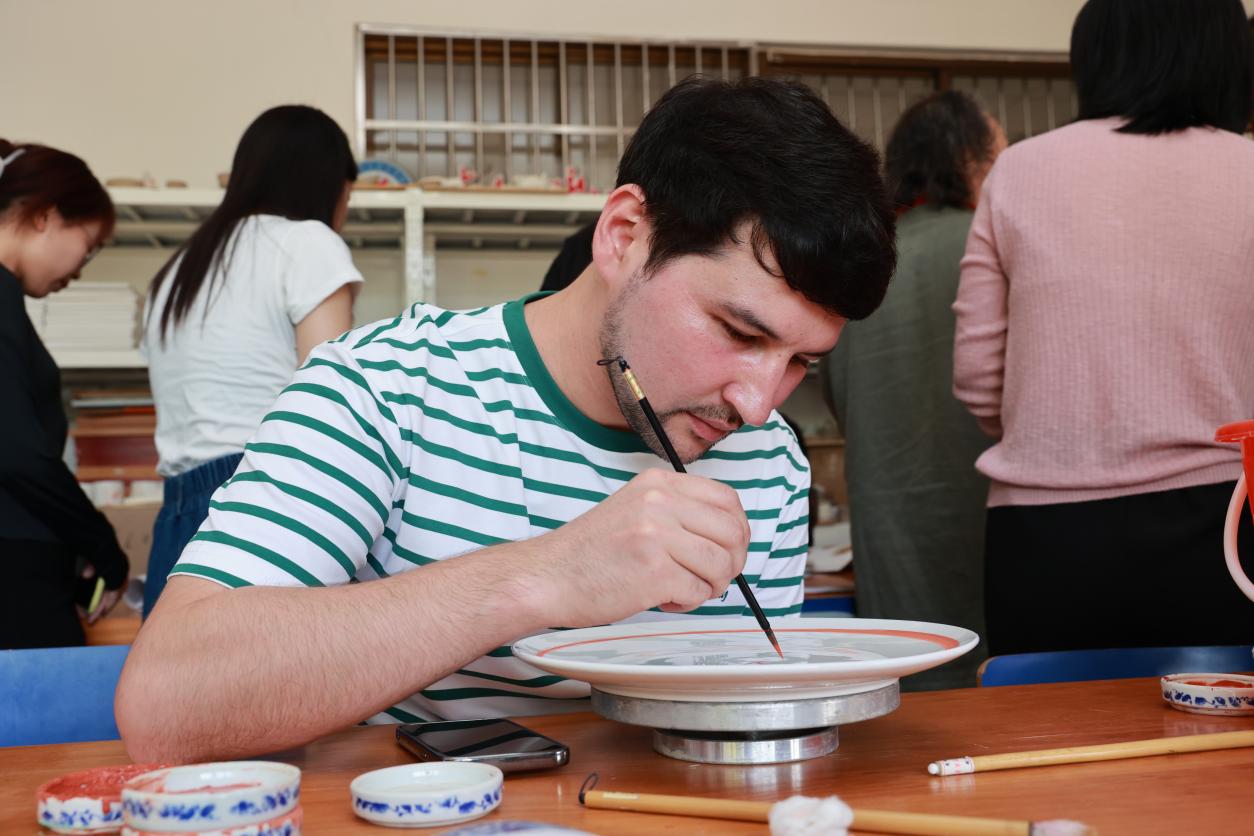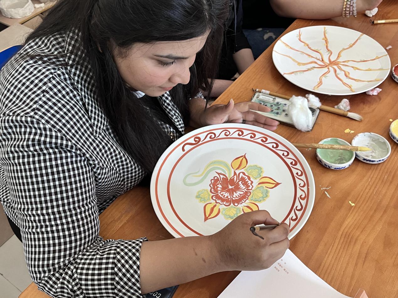 为让留学生进一步感知和体验丰富多彩的德州地域文化,5月17日,应市侨务办公室邀请,国际教育学院组织十余名留学生前往德州职业技术学院,参观“德州窑”红绿彩生产实训基地,围绕体验红绿彩手作技艺开展新一期“留学生看德州”社会实践活动。