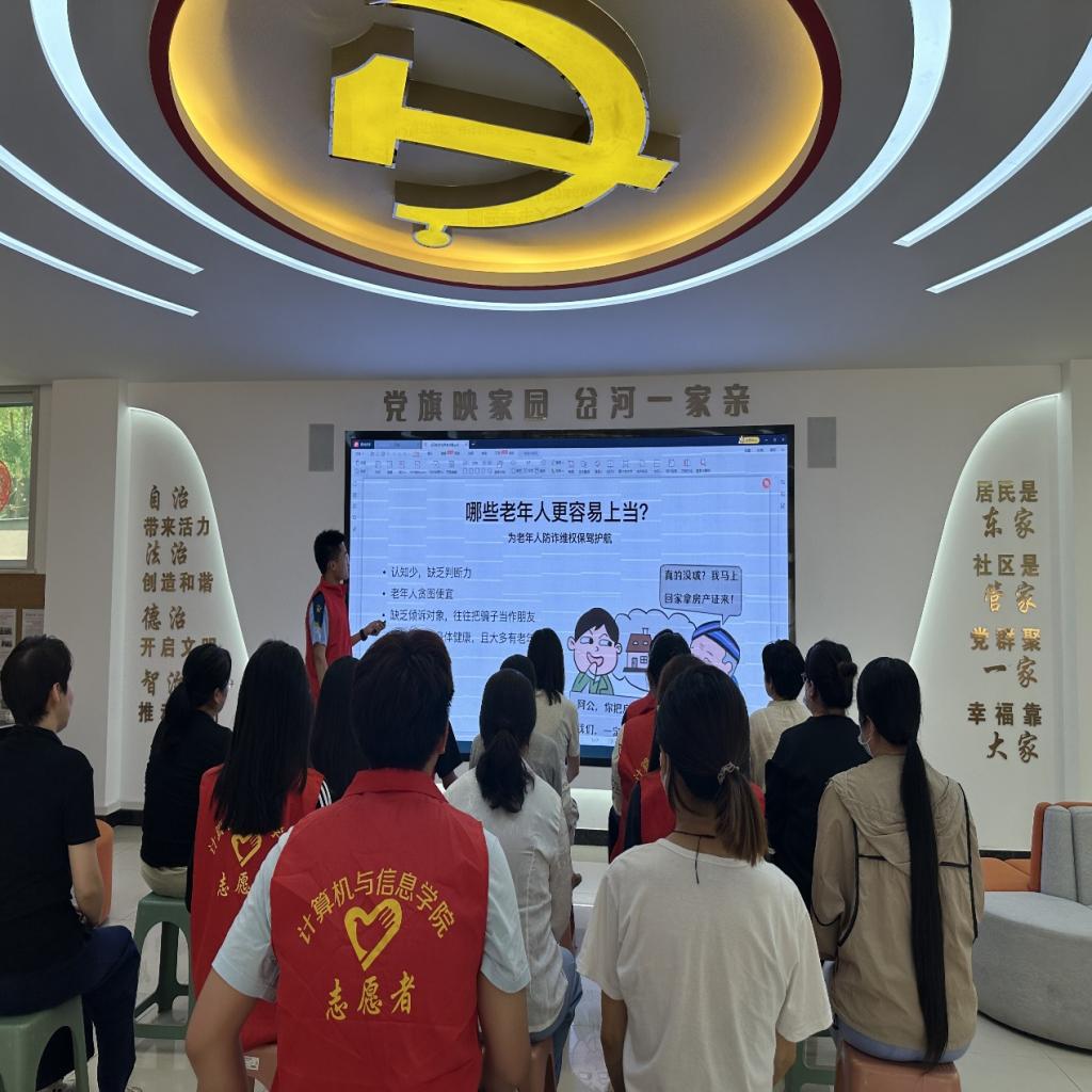 活动中,青年志愿者们用精心准备的PPT,向居民们进行了防诈骗知识的宣讲。宣讲内容涵盖了网络诈骗的最新趋势、常见诈骗手法、如何识别和防范诈骗、以及遇到诈骗时的正确应对方法。志愿者们通过生动的案例分析,让居民们对网络诈骗有了更直观的认识。志愿者们还社区老人们进行了一对一的指导服务,针对居民们在日常生活中可能遇到的各种网络安全问题,提供了个性化的解答和建议。这种一对一的服务不仅帮助老人们解决了实际问题,也体现了我院青年志愿者们对社区服务的热忱和专业精神。