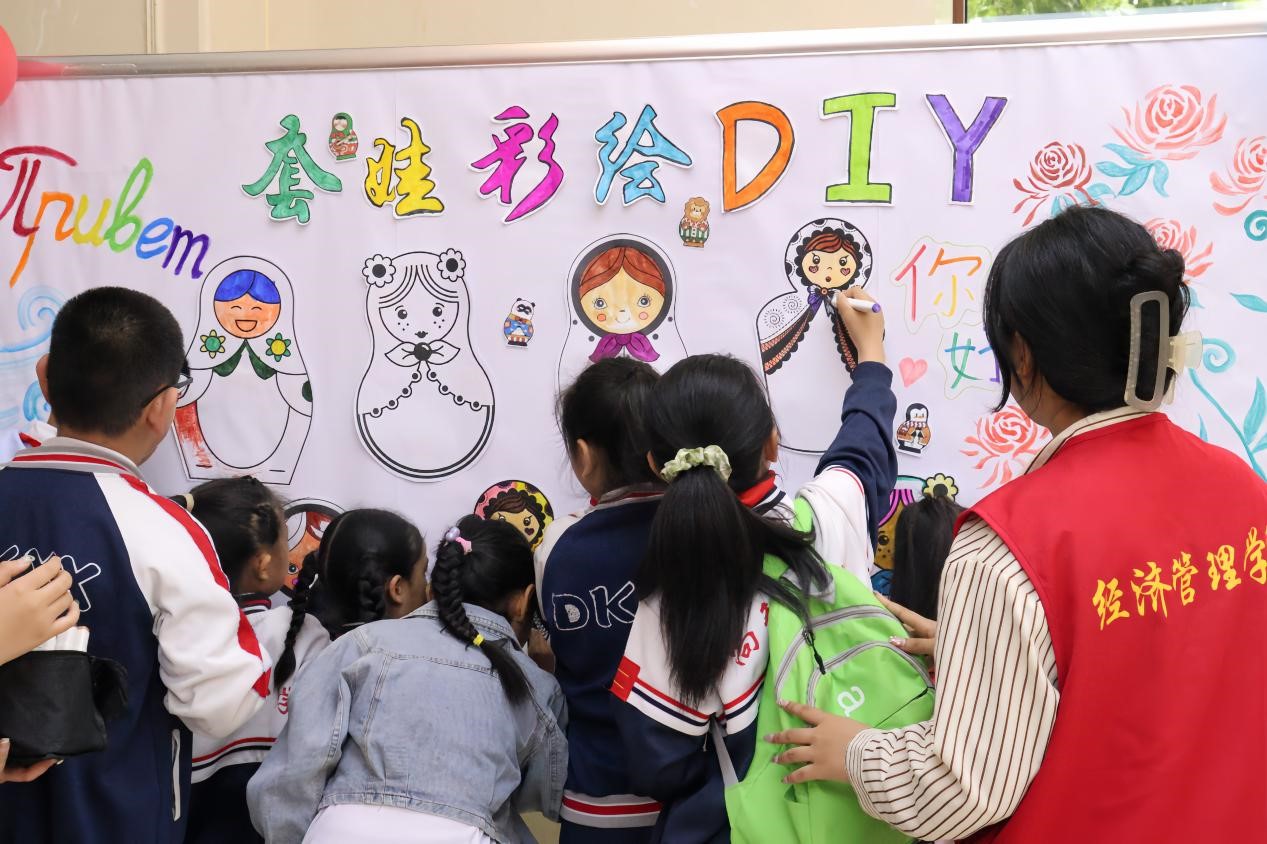 为了开展好此次活动,经管、双德、体院的志愿者们和图书馆的老师们精心策划、充分准备,在不同参观场地巧妙地设置了“套娃彩绘、愿景贴”、“听数抱团”、“花开花落”等互动环节,同学们相互交流、共同学习,在研学中收获了友谊,也提升了自己的能力。