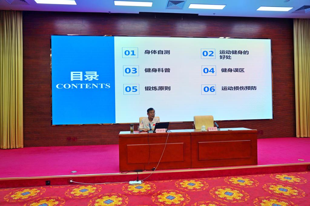 颜世亮教授以“运动健身基本常识”为题,围绕身体自测、运动健身的好处、健身科普、健身误区、锻炼原则、运动损伤预防等六个方面进行讲解。通过讲解进一步提升了市直机关干部职工的健康意识,帮助他们掌握了基本的健康和锻炼知识,使大家充分的意识到自己是健康的第一责任人,健康的生活方式能够有效的维护和促进自身健康。