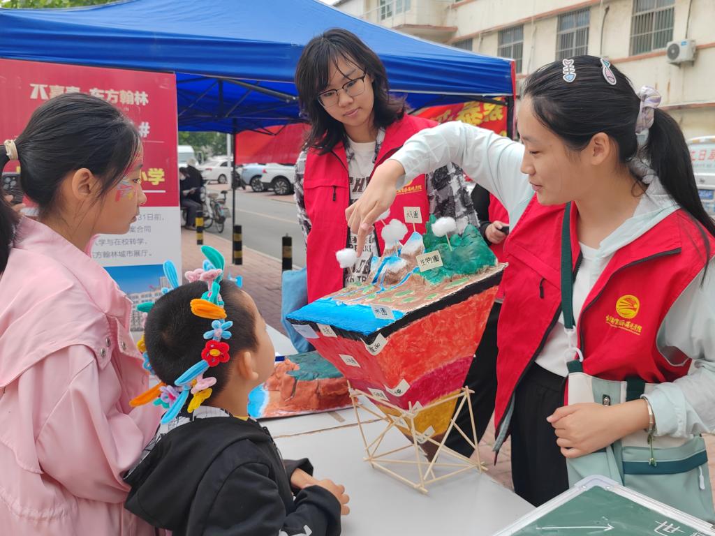 活动现场,志愿者们借助黄河大集的机会,带来了各种精心制作的地理模型,吸引了众多小朋友和居民的围观;通过生动的讲解和互动,将复杂的地理知识简单化、趣味化,让小朋友们和居民们听得津津有味。不仅如此,在讲解和展示过程中,志愿者们也着重体现了地理模型的制作方法与实际应用,在科普地理科学的基本知识的同时,让社区小朋友们和居民们了解地理模型的作用,提高说服力和专业性。