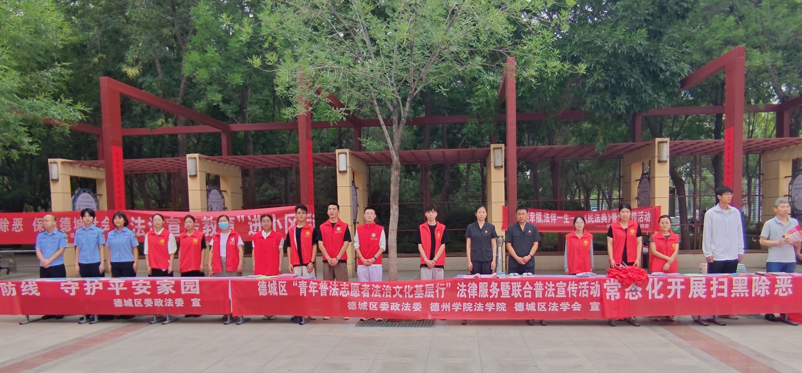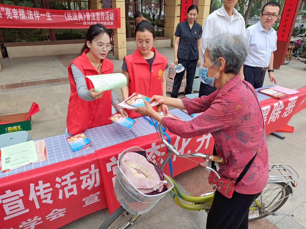 6月21日,法学院联合德城区委政法委、区法学会在区法治文化广场开展“青年普法志愿者法治文化基层行”法律服务宣传活动。同时来自区法院、区检察院、区公安分局、区司法局、新湖街道普法志愿者共30余人参加活动。