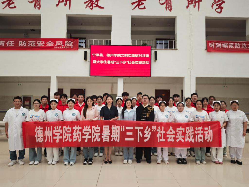 为深入学习宣传贯彻习近平新时代中国特色社会主义思想,全面贯彻落实党的二十大精神,引导和帮助青年学生在社会课堂中受教育、长才干、作贡献。7月9日,药学院、健康医学院组建“南丁格尔”志愿服务队和“馨星助梦”志愿服务队赴宁津县开展暑期“三下乡”社会实践活动。