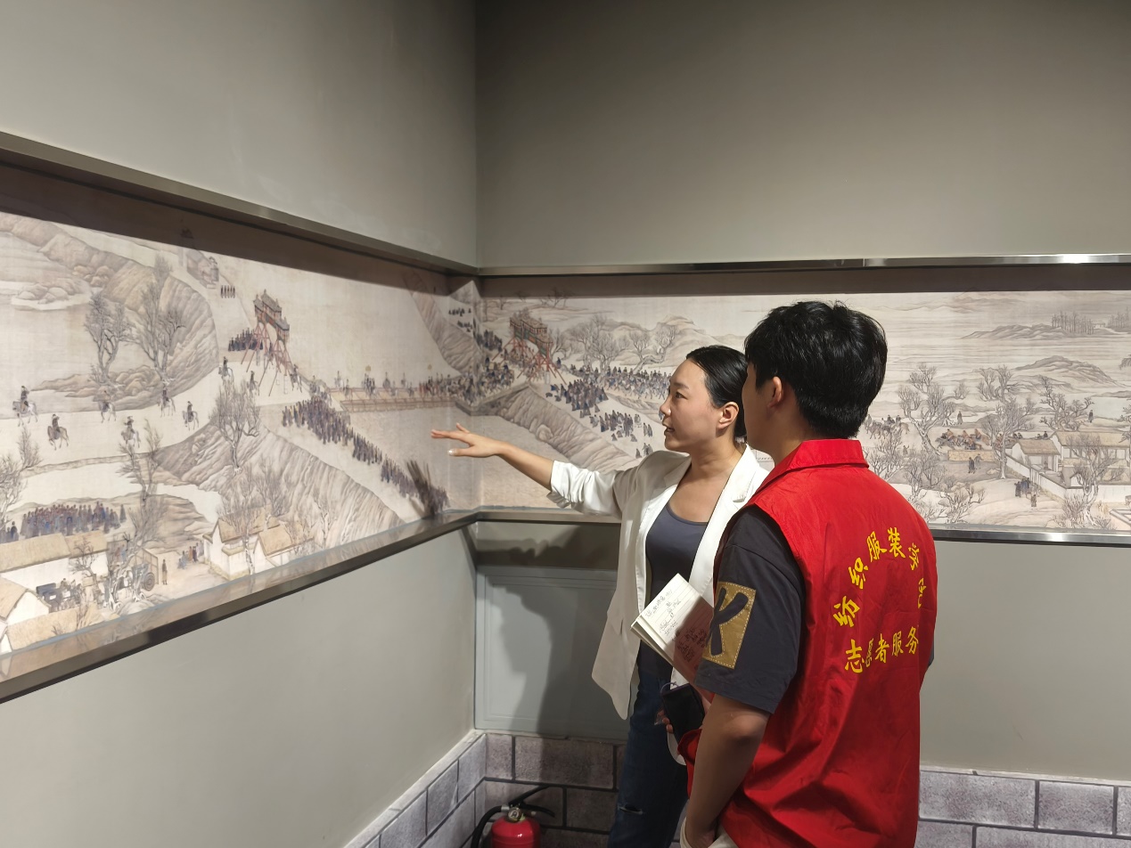 7月5日,志愿服务团首先抵达德州市二屯镇,参观了古运河沿线的历史遗迹,并与二屯镇镇政府相关负责人进行了座谈交流,深入了解运河文化的历史变迁、文化价值及其对当地经济社会发展的深远影响。经过与镇政府相关负责人的充分讨论与精心策划,志愿服务团最终确定了以“运河文化”为核心,融合“纤维艺术”与“鲁锦技艺”的创作计划——设计并制作三幅展现不同季节风貌的运河文化纤维艺术挂毯及一系列鲁锦艺术挂件,旨在以艺术的形式讲述运河故事,传承鲁锦非遗之美。