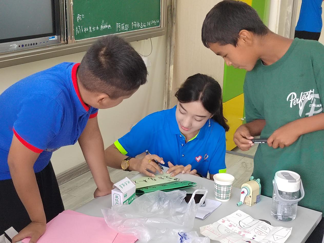 在喀什英吉沙县第五小学服务期间,支教队员们秉承“德智体美劳全面发展”的教育理念,坚持做到一日一总结、二日一磨课。针对小学生的特点,精心设计一系列特色课程:通过书法临摹、吟诵古诗培养学生的汉语思维,推广普及普通话;通过生物作品的手工制作,提升小学生审美能力,认识人与自然的关系;通过显微镜观察生物微观世界,培养小学生科学探究兴趣;通过师生一起学唱《把未来点亮》、一起踢足球、老鹰捉小鸡等文体活动,增进师生,生生之间的感情,培养学生团结协作的精神;通过查漏补缺的方式辅导小学生课业,帮助学生提升发现问题、分析问题和解决问题的能力。同时,结合当地资源深化劳动教育,带着学生们走进农场,亲身体验瓜果采摘的乐趣,参与校园卫生的打扫工作,有效培养孩子们的动手能力和责任感。