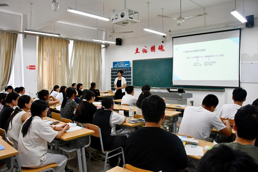 孙爱军老师就积极融入新生活、明晰人生新目标、构建积极阳光心态三个方面,为新生提供切实可行的心理调适方式,引导新生相信自己的能力和价值,积极面对自己内心的情绪与感受,主动适应新环境,以实现个人成长和自我提升,并强调如有心理方面的困难,要及时向辅导员、心理老师寻求专业援助。