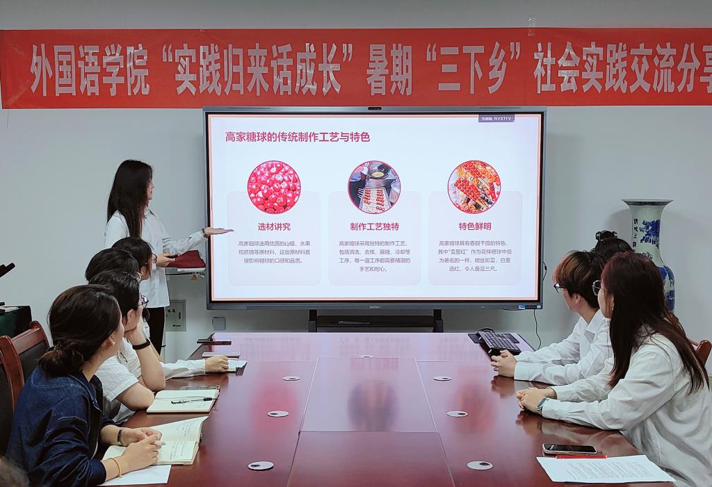 为深入学习宣传贯彻习近平新时代中国特色社会主义思想,引导和帮助广大青年在与社会实践相结合的“大思政课”中“受教育、长才干、作贡献”。9月13日,外国语学院在博文楼240室开展“实践归来话成长”暑期“三下乡”社会实践成果展示交流会。外国语学院相关负责人、专业教师及20余支社会实践团队参加。