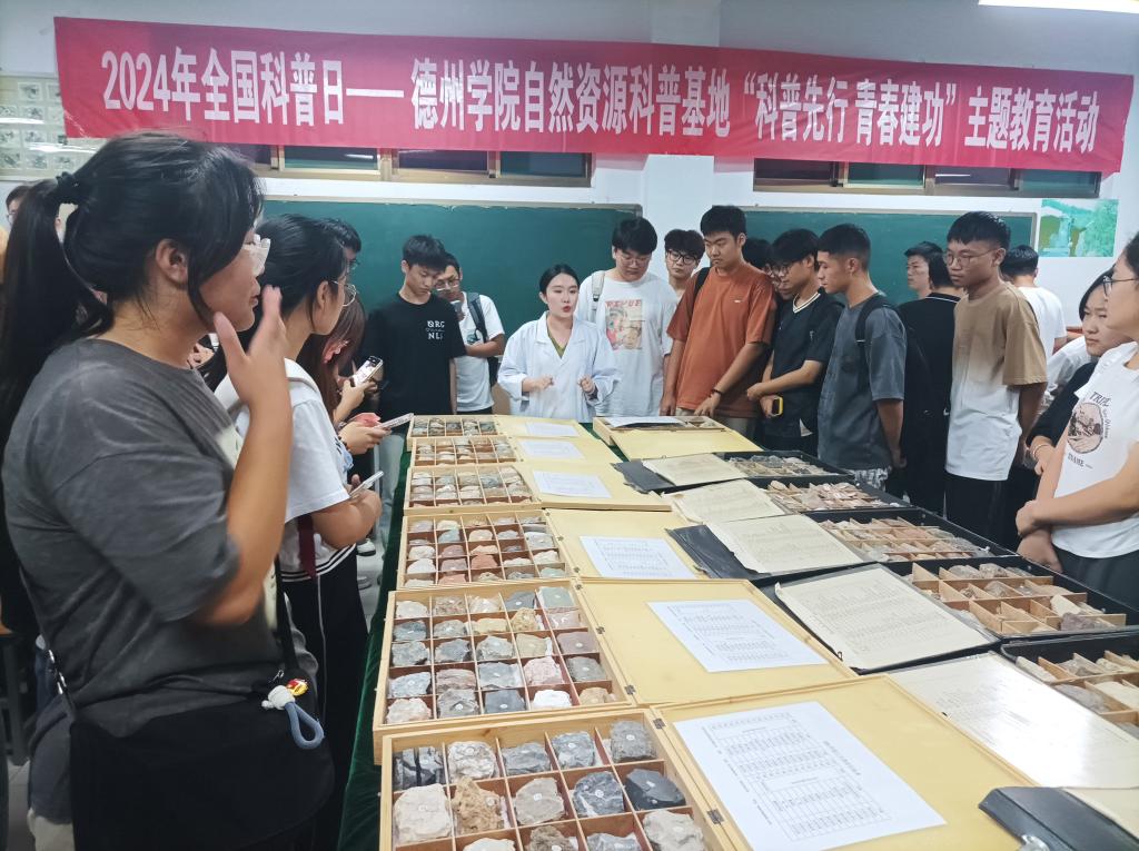 地质标本室为学生们揭开了地球科学的神秘面纱。展出的各种岩石、矿物和化石标本让学生们对地球的历史、地质变化和自然资源有了更加深刻的理解。在这里,他们学习到了如何科学地利用和保护地球资源,这对于落实科普日主题中的“科技强国”意义重大。