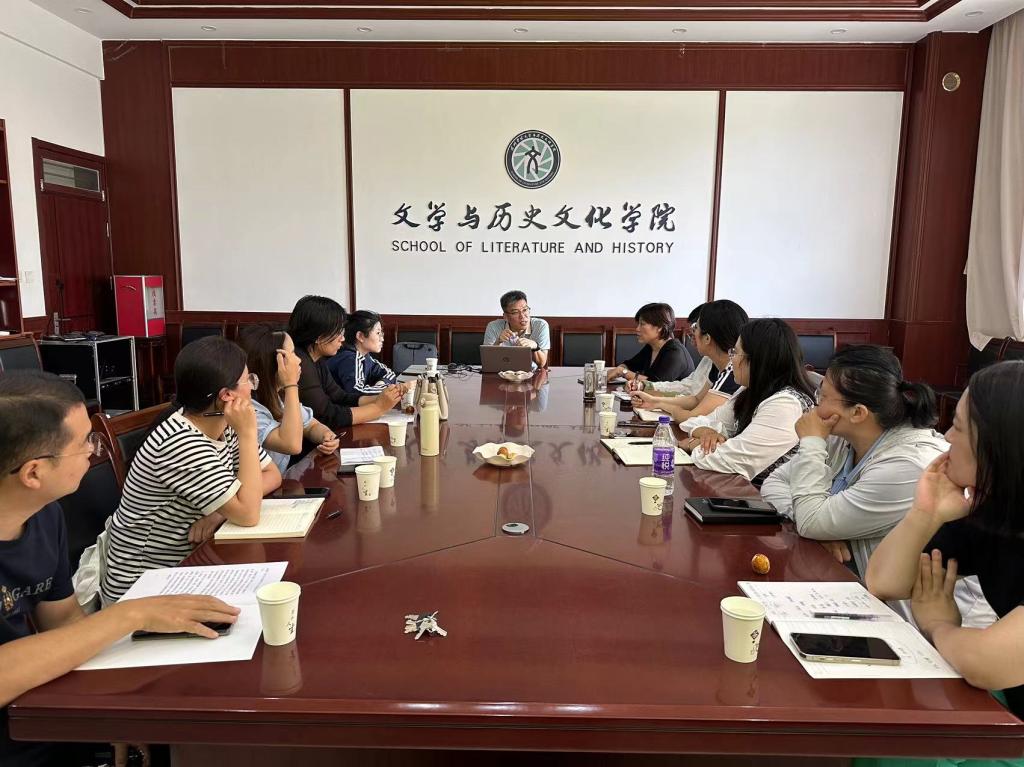 讲座结束后,李连伟副教授与文学与历史文化学院的各位老师共同开展以“国际中文教育领域的语用信息问题”为主题的学术沙龙活动。李连伟副教授向与会学者讲解了国际中文教育领域的发展前沿,他提到汉语言文学专业要紧跟时代步伐,主动利用数字化信息技术为专业赋能,孕育一批高质量国际中文教育的优质课程资源。在场各位老师也就自身的研究方向和国际中文教育工作经验展开深度对话。