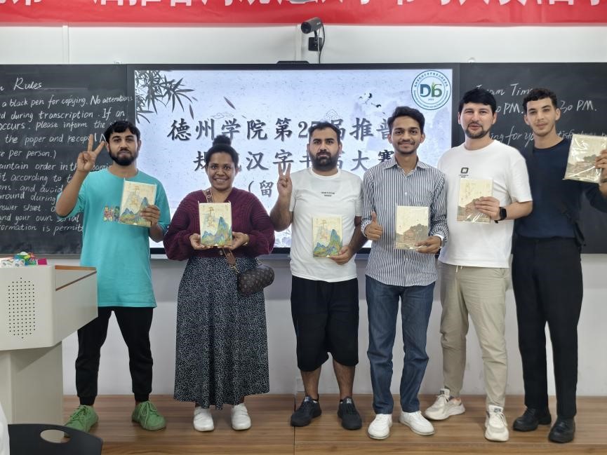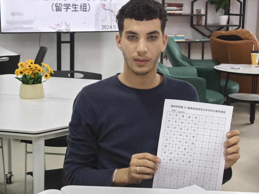 紧接着,9月13日,举办留学生组第27届推普周规范汉字书写大赛,留学生们积极参与,展现出他们对汉字的兴趣与热爱,通过书写中华优秀传统诗词,用心感受汉字魅力,传递文化温度,突出他们对跨文化交流的渴望与对中华文化的深切尊重。活动最后,负责人为留学生颁发活动奖品,并激励他们深入学习中华优秀传统文化。留学生们纷纷表示,“通过此次活动,增强了我们对中华文化的了解与热爱,我们会保持这份对汉字及文化的热忱,努力成为传播和发扬中华文化的桥梁与使者。”