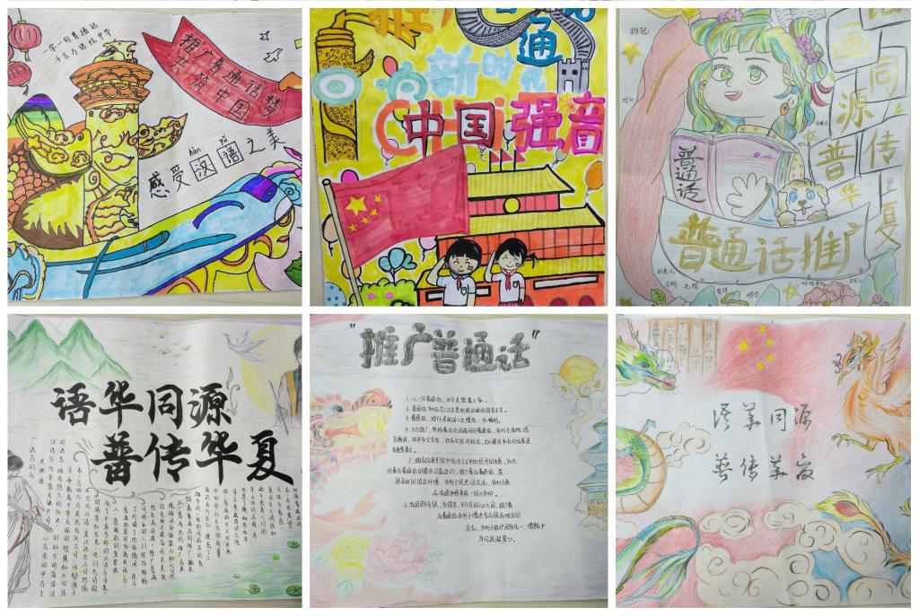 此次活动激发了学生参与的热情,学生紧扣普通话和民族团结主题,充分发挥想象力和创造力,设计出了一幅幅富有创意、蕴含深厚文化内涵和民族情感、极具感染力、色彩鲜艳、构图巧妙的海报,充分展示了学生们对普通话的热爱和对民族团结的向往。经过层层筛选,6份创意海报脱颖而出,评选出一等奖1名,二等奖2名,三等奖3名。这些作品不仅有着扎实的画功和优秀的色彩搭配,还巧妙地添加了如龙、凤、祥云、少数民族人物等许多中国元素。它们将普通话的音韵美与民族元素完美融合,生动地展现了各民族共融共生的美好愿景。