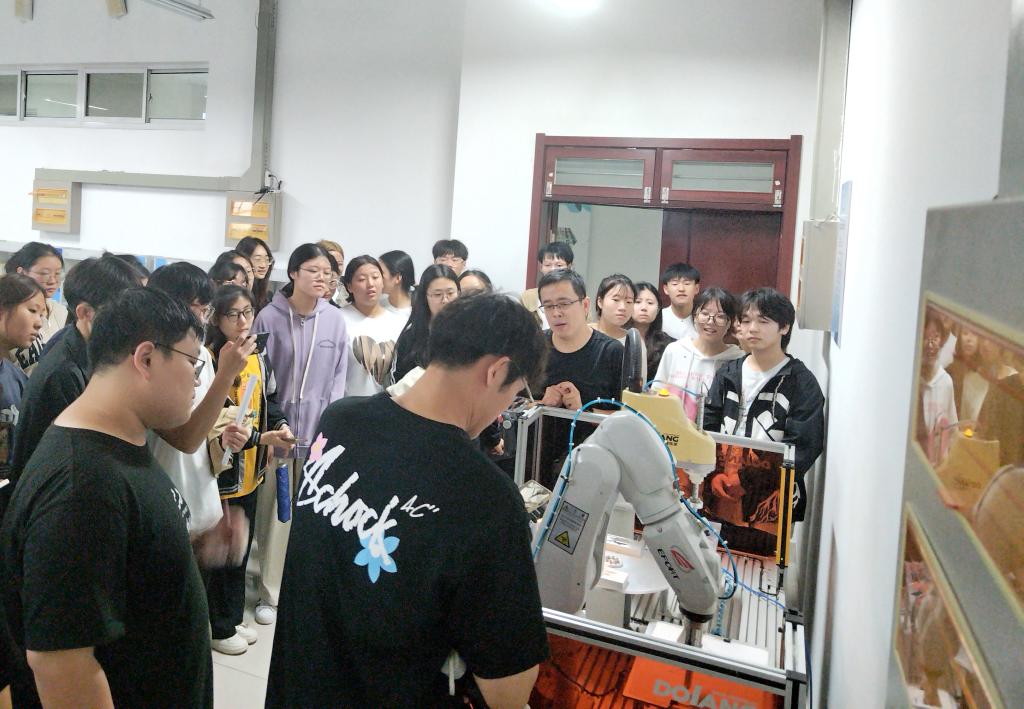 设备管理人员详细讲解了设备的工作原理、应用领域和发展前景。学生们根据不同的实验项目内容,进行了实操和制作,并积极交流、互动,现场气氛热烈。