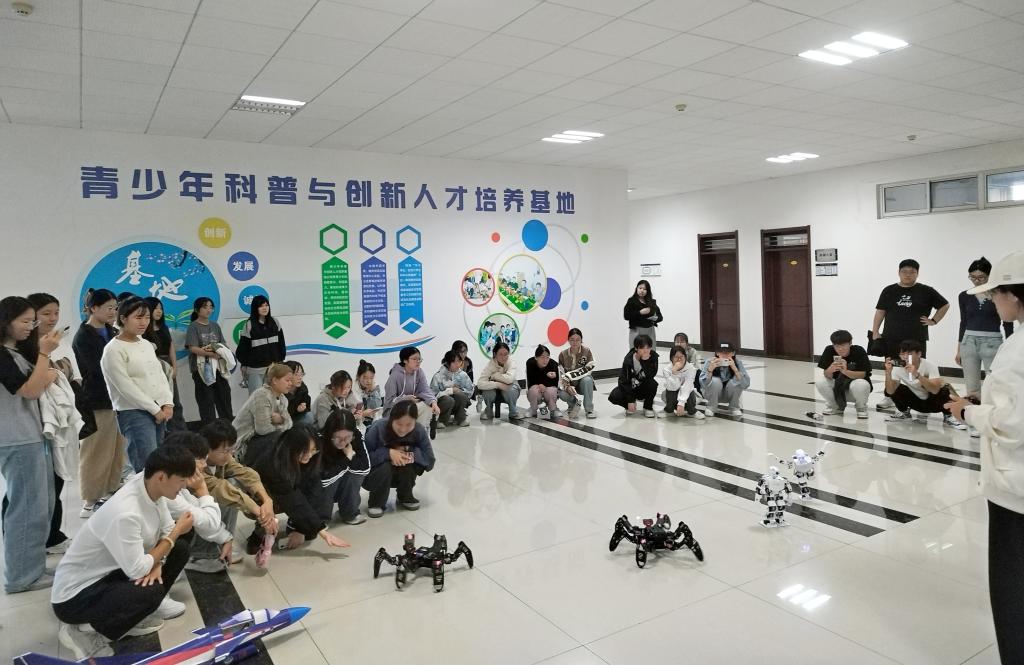 活动中,学生参观了学校公共实训中心和公共科研平台,全程参与实验项目,进行“沉浸式”科普学习。在公共实训中心实际动手操作体验了智能机器人、工业机器人、无人机、智能车、VR以及 3D 打印等各种智能设备。在公共科研实验平台参观体验了电子显微镜、全自动物理化学分析仪、电感耦合等离子体发射光谱仪、气相色谱仪、发酵设备等的使用。