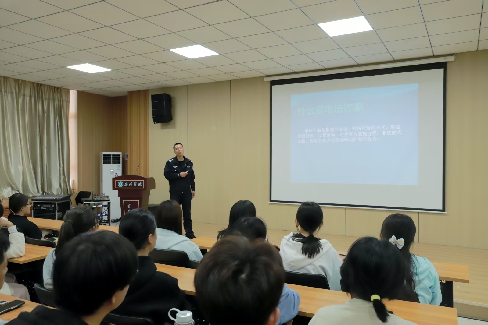 通过此次反诈宣讲进校园活动,切实增强同学们的识诈、反诈意识,筑牢校园反诈“安全门”。 学院将以此宣讲活动为契机,加强警校合作,深入开展以反诈为主的安全宣传教育活动,不断增强学生的网络安全防范意识,筑牢校园安全防护之墙,为同学们的学习和生活提供有力的保障,共同构建平安和谐校园。