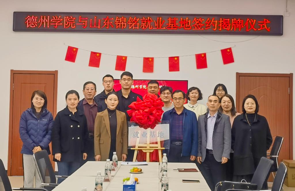 山东锦铭检测技术有限公司负责人介绍了公司发展历程、产业发展状况、人才招聘需求等情况,表示希望强化校企交流合作,精准对接就业供需,持续深化产教融合,实现互利共赢。生态与资源环境学院负责人介绍了学院学科建设、师资队伍、人才培养、科学研究、硕士点建设及学生就业等方面的情况,也希望校企双方以此为契机,建立长效合作机制,深化产教融合,实现资源共享,优势互补,共同发展。随后,双方签订了就业基地协议并举行了揭牌仪式。