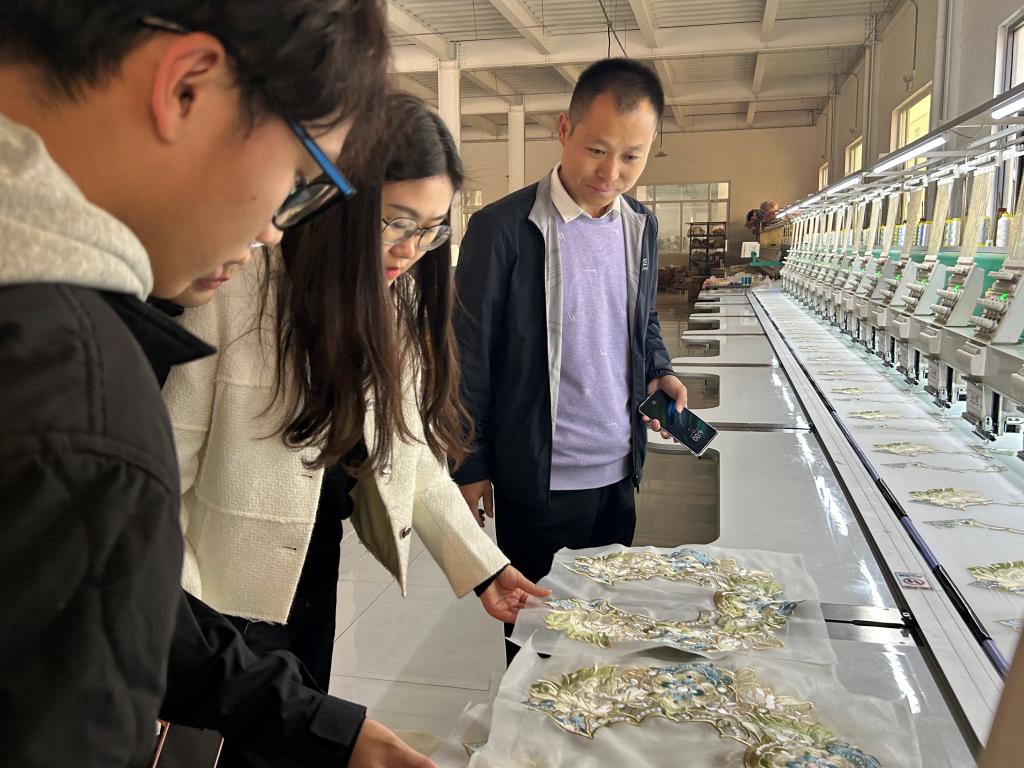 11月9日,纺织服装学院一行6人参观了曹县e 裳小镇数字经济产业园、中国首批淘宝镇大集镇、洛如嫣品牌服饰、辰霏服饰、山河锦绣、曹县再创服饰有限公司等汉服产业代表企业,并进入中国淘宝村丁楼和孙庄了解电商产业链发展情况。山河锦绣企业负责人陈龙对学院一行表示热烈欢迎,详细介绍了本地服装产业、电商行业的发展历程和现状以及公司的详细情况,表示曹县汉服产业正处于迭代升级的关键时刻,对高水平服装专业人才求贤若渴。学院团委书记介绍学院专业情况、办学特色和2025届服装专业毕业生整体情况,表示产教融合、促进就业是纺织服装学院的重要工作之一,希望双方进一步加强合作的广度和深度,努力实现资源共享、校企共赢,为学生搭建优质就业平台,为企业提供更多优秀人才。