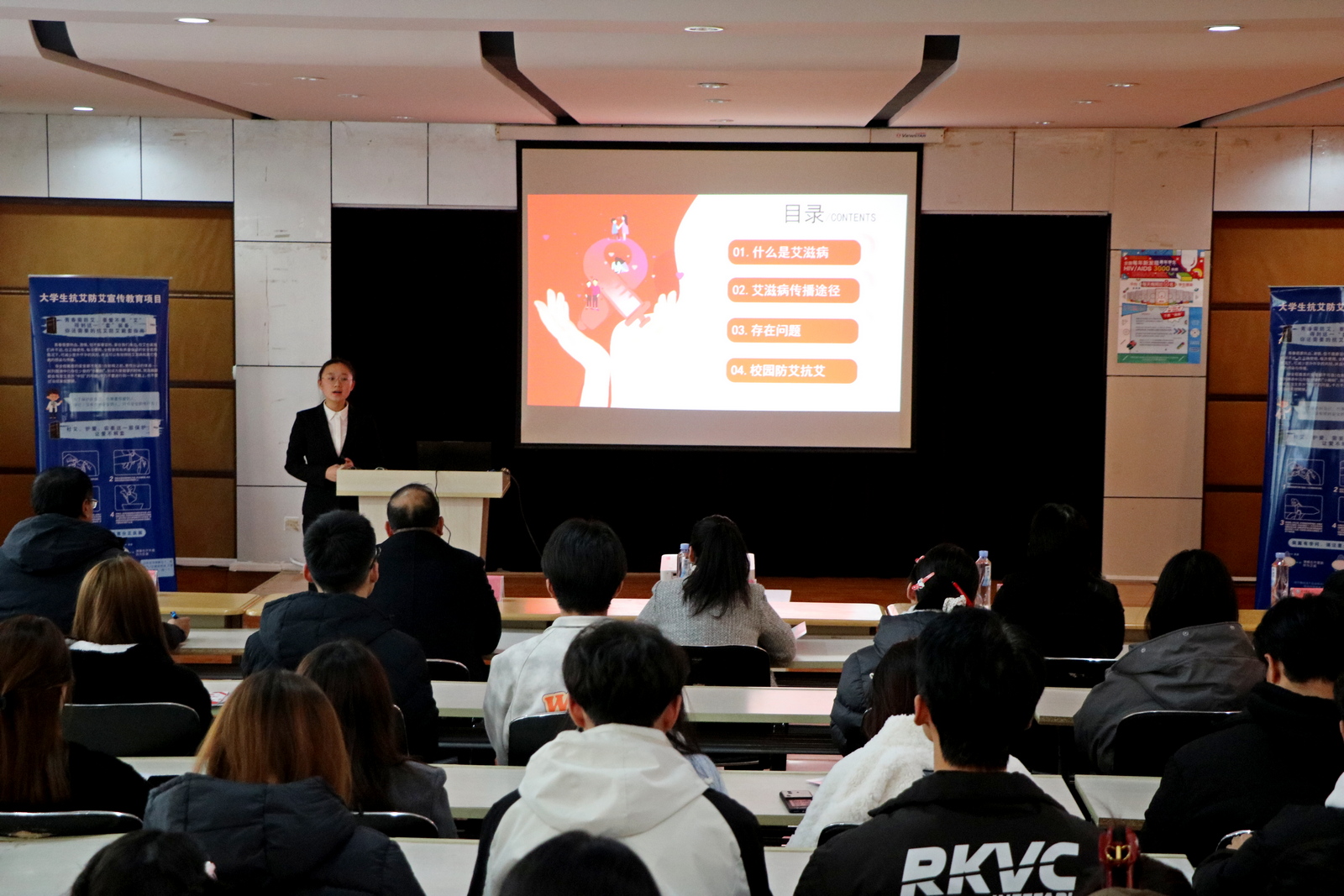 为广泛宣传和普及艾滋病防治知识,切实提升大学生对艾滋病的认知度和防范意识,在第37个世界艾滋病日来临之际,由健康医学院举办的大学生抗“艾”防“艾”宣传教育暨优秀青年防“艾”主题理论宣讲评选活动于11月29日在求实楼215教室正式开赛。