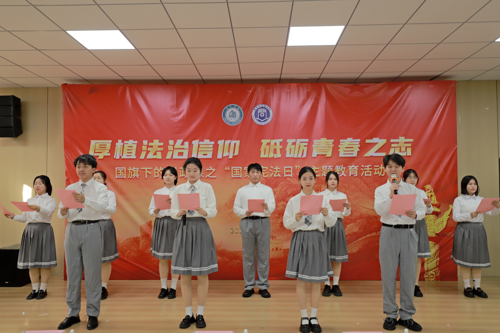 在第11个国家宪法日到来之际,12月4日上午,商学院在明理楼0157举行“厚植法治信仰,砥砺青春之志”国旗下的思政课之“国家宪法日”教育活动。商学院班子成员,党员教师代表,全体辅导员,学生党员、入党积极分子等150余人参加活动。