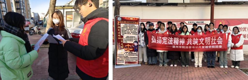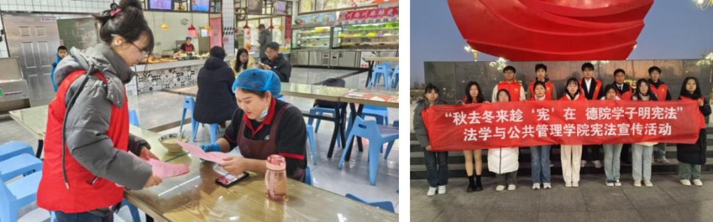 12月6日,法学专业学生在校园内开展“秋去冬来趁‘宪’在 德院学子明宪法”校内普法宣讲活动,通过宪法宣传页发放、知识问答、现场咨询等多种方式,将宪法教育融入校园文化,让尊法、学法、守法、用法在全社会蔚然成风。