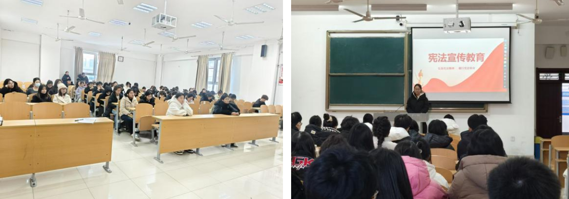 11月28日,学院副教授孙桂燕老师在学生事务与发展中心,为全校学生代表开展“学习宪法知识 弘扬宪法精神”宪法宣讲活动。孙老师以浅显易懂的语言,深入浅出地讲解了宪法日的由来以及设置的意义,结合生动的宪法事例和具体的宪法条文对宪法的内容、原则和精神进行了深入解读,激发了学生学习宪法的热情和兴趣,为全校营造尊崇宪法、遵守宪法、维护宪法的良好氛围起到了推动作用。