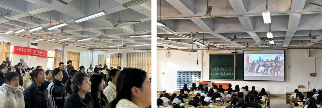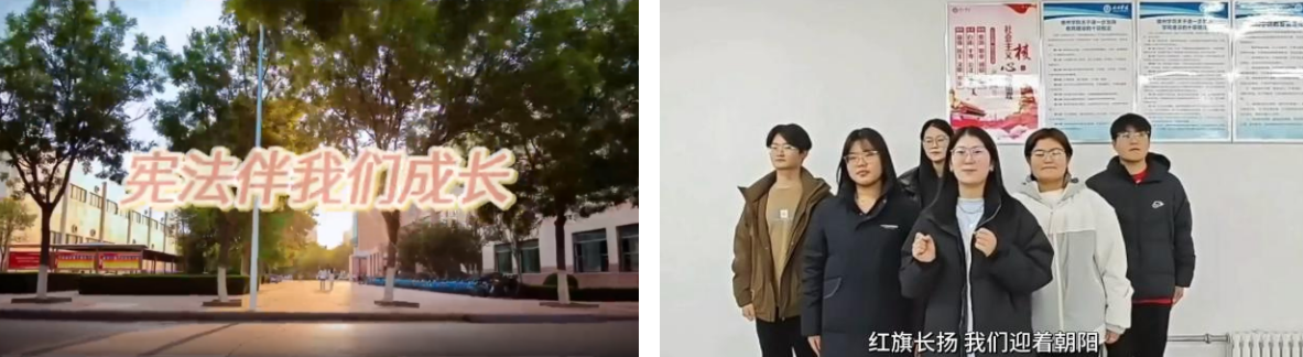 12月4日,学院在校园内开展“宪法伴我们成长”歌曲传唱活动。“红旗长扬,我们迎着朝阳,成长路上,聆听宪法雄壮的声响。”以旋律为媒介,让宪法精神在歌声中飞扬。让法治旋律在每个人心中共鸣,让宪法精神“内化于心、外化于行”。