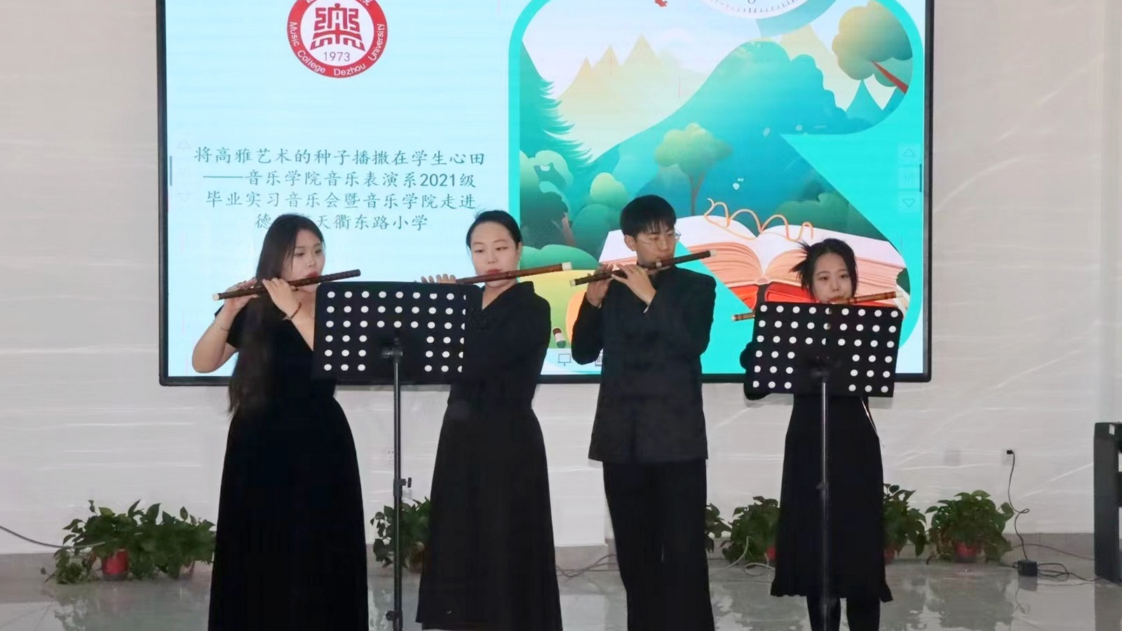 从德州市实验小学到天衢东路小学,再到第九中学和第十中学,到财鑫康养综合服务中心与胜利社区,最后回到校园中相伴四年的艺烁音乐厅,每一场音乐会都充满了激情与感动。独唱、合唱、独奏、重奏、独舞、齐舞轮番上阵,无论是欢快的旋律还是深情地独唱,无论是跳跃的舞姿还是曼妙的定格,每一个音符每一个鼓点,都承载着他们对过往岁月的温柔回望与对未来的深切期许。
